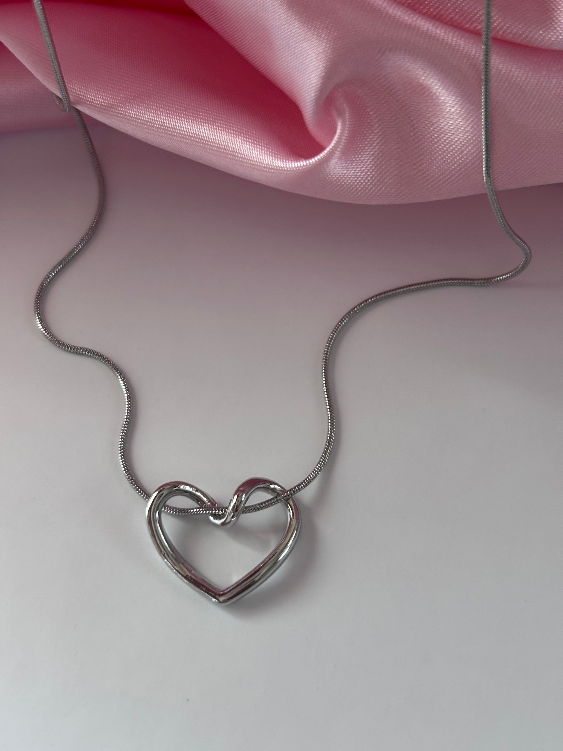 Collar en acero titanio con dije de corazón entrelazado. Minimalista, elegante y pensado para durar tanto como tus mejores momentos. 🤍