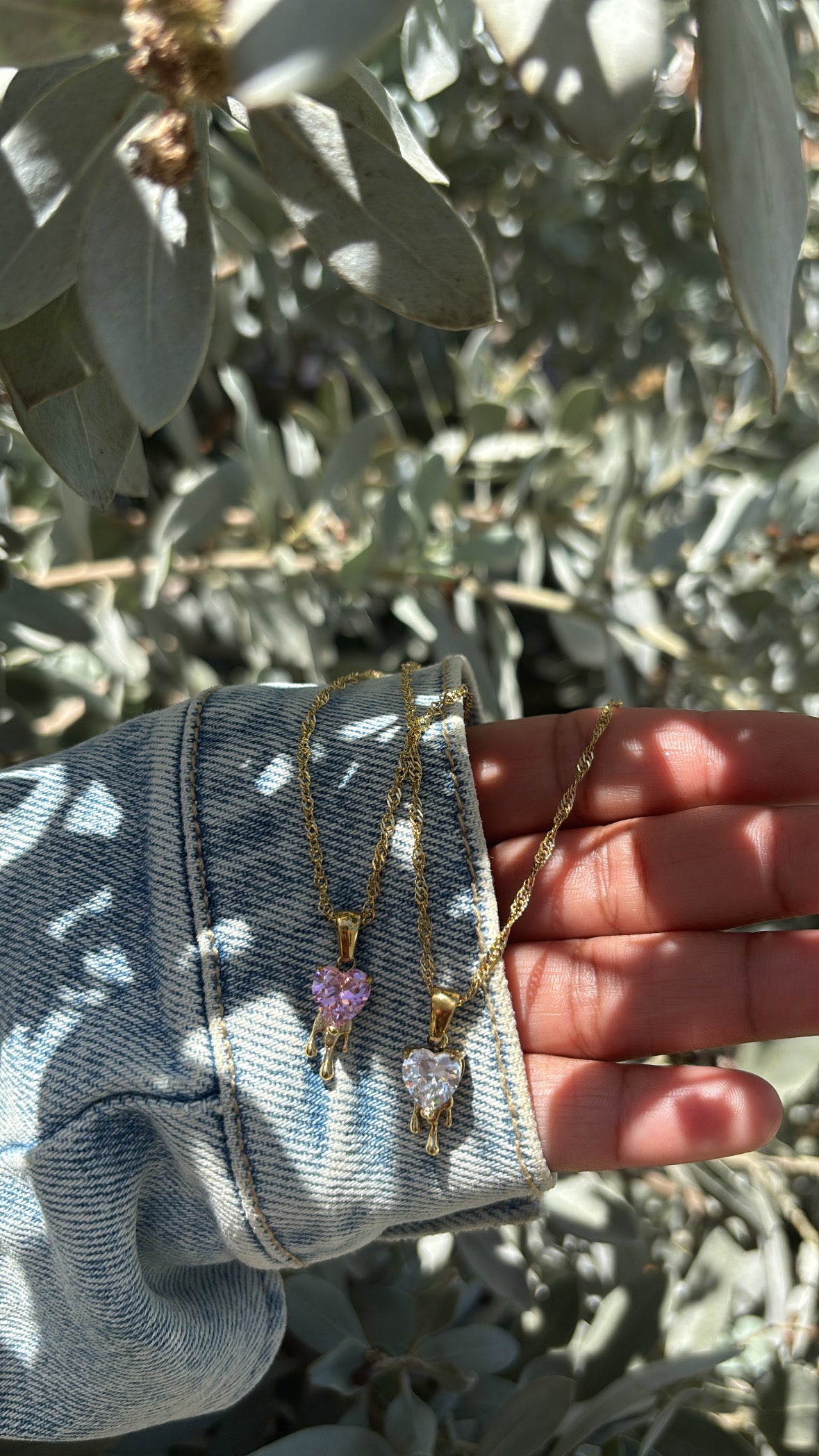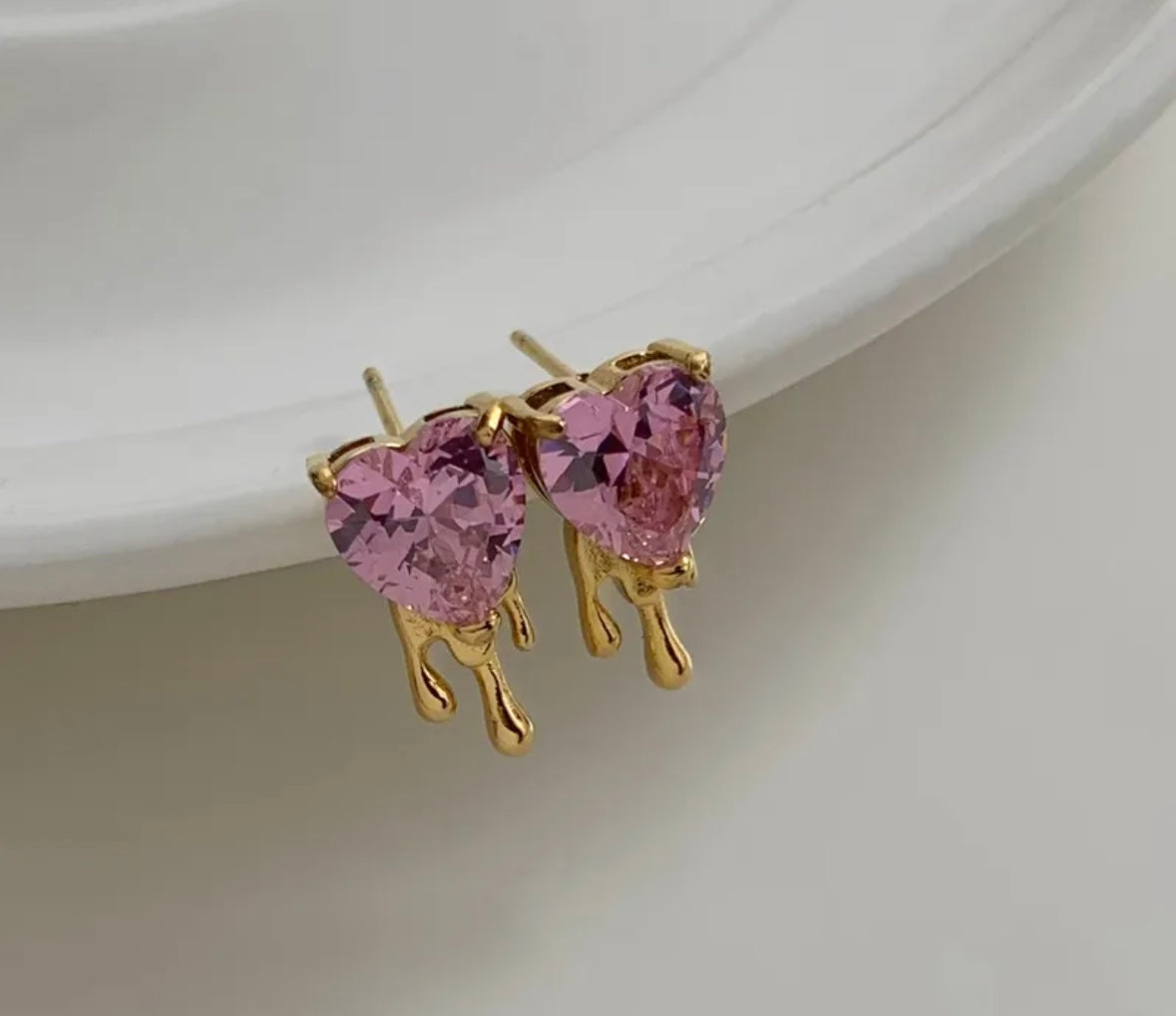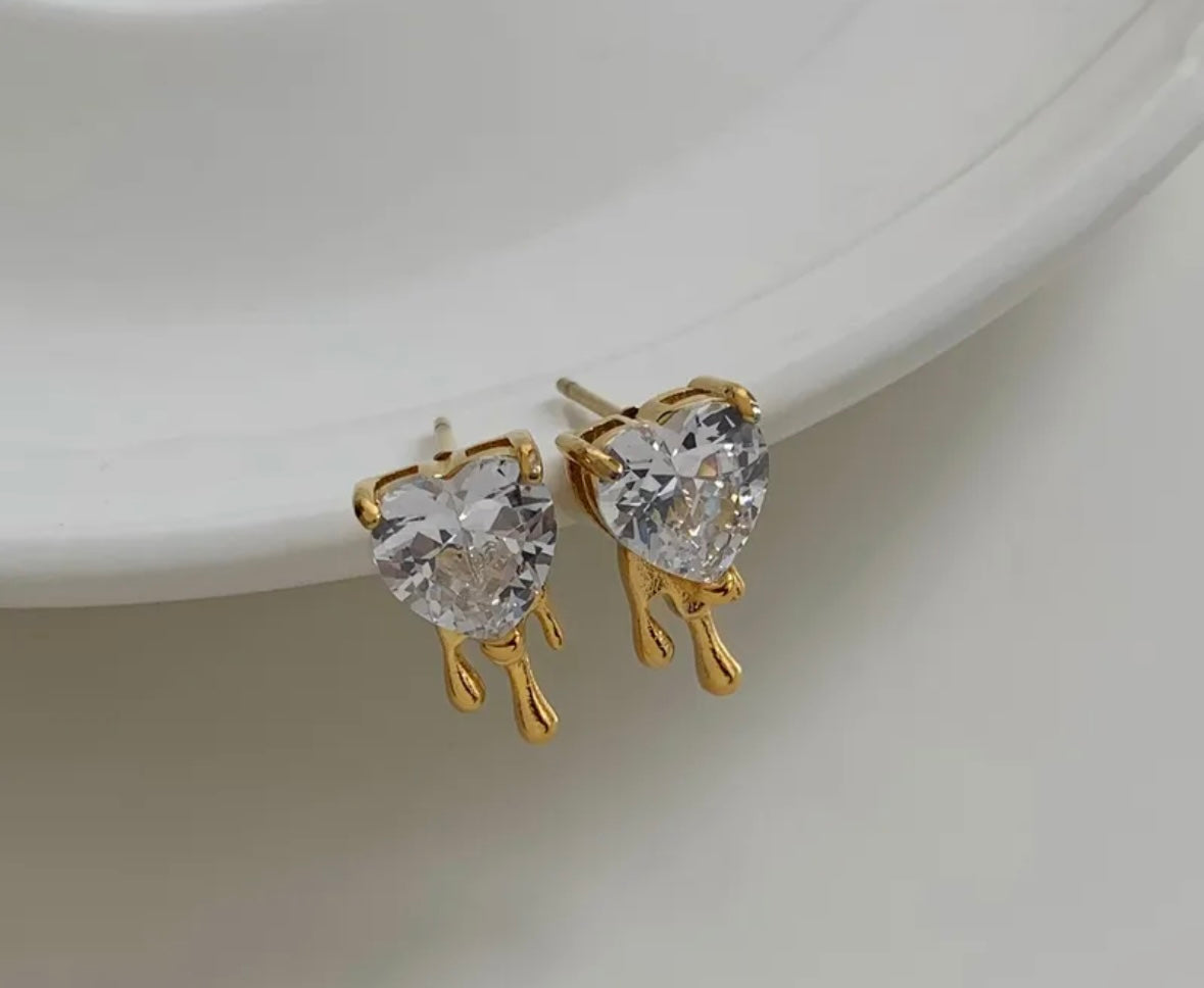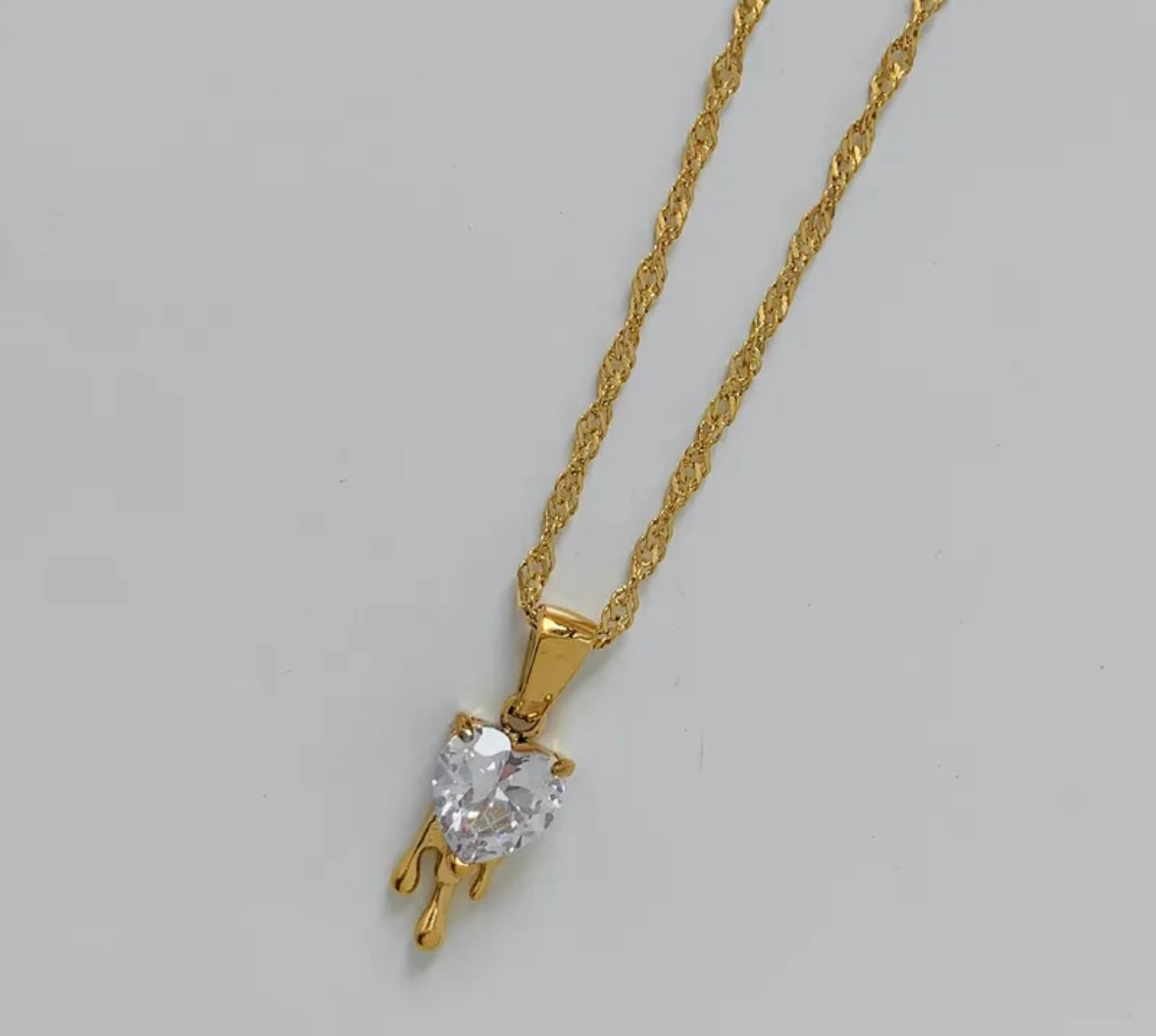 Incluye collar y pantallas en forma de corazón con efecto “derretido”, elaborados en acero inoxidable 316, hipoalergénico y resistente al agua.