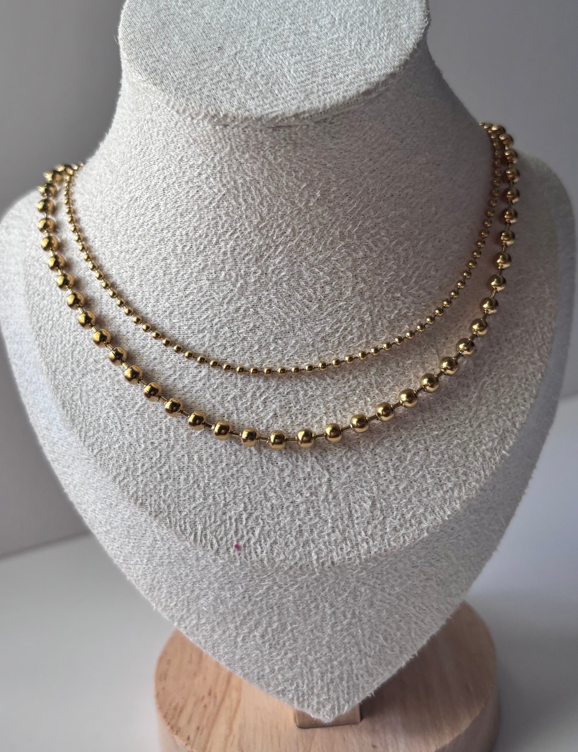Eleva tu look con este set doble de collares de esferas en acero inoxidable 304, un diseño clásico que nunca pasa de moda.